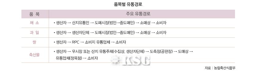 보고서에선 농산물은 유통경로가 복잡하고 유통과정에 참여하는 유통주체가 많아 유통비용이 많이 소요되고 유통마진율이 상대적으로 높다고 지적한다. 또한 유통경로 구성원들이 각각 이윤 극대화를 추구하기 위해 개별·독립적인 의사결정과 시장행위를 하고 있으며, 상품의 특성상 반복적인 수급 및 가격의 불안정 문제에 직면하고 있다고 진단했다.