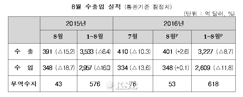 | ▲ 8월 수출입 실적 (통관기준 잠정치) (자료: 산업통상자원부) |