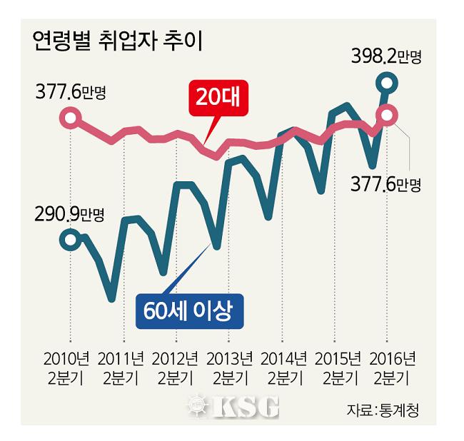 2016년 통계청에 따르면 노인이 일하기를 원하는 비율은 10명 가운데 6명인데, 이 가운데 절반 이상이 생활비를 이유로 꼽았다. 대부분이 여가나 취미가 아니라 실제 생계를 유지하기 위한 것인데도 정작 노인을 위한 질 좋은 일자리는 찾기 어려운 것이다.