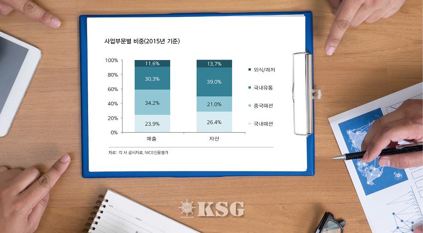 한국기업평가에 따르면 이랜드그룹은 주력산업인 패션업종(국내 및 해외패션)이 자산(매출액)에서 차지하는 비중이 52%(59%)로 가장 높고, 유통업, 외식·레저업이 각각 30%(28%), 14%(10%)를 차지하는 등 3개 업종의 매출 및 자산의 비중이 압도적으로 높다. 특히 패션사업과 유통사업은 모두 내수소비산업이라는 특성을 갖는다. 그중에서도 패션산업은 국내, 중국, 미국, 유럽 등으로 지역적인 다각화가 이뤄져 있다.