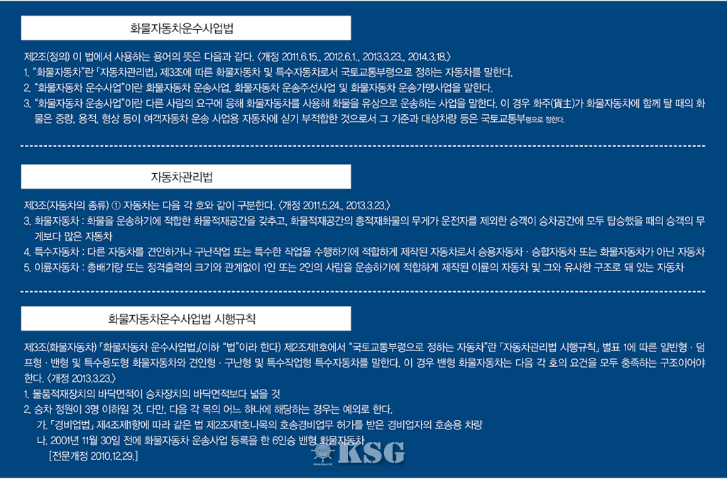 화물운송수단에 대한 관계법령상 기준의 변경 필요성