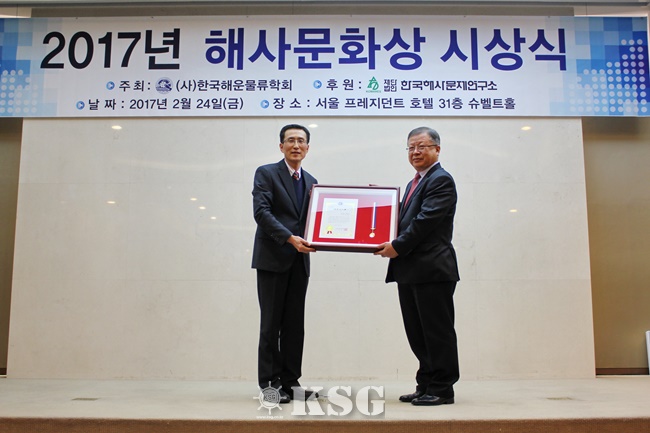 이어 진행된 시상식에서 한국해운물류학회는 제26회 해사문화상 수상자로 장금상선 정태순 회장을 선정했다. 1948년생인 정태순 회장은 1971년 한국해양대학교 항해학과를 졸업하고 1989년 장금유한공사를 설립해 한·중 최초로 정기 직항로를 개설한 바 있다. 또 장금상선 최고경영자 취임 이래, 회사를 국내 10대 선사로 성장시키는 등 적극적인 해외시장 개척과 안정적인 경영을 통해 해운산업 일자리 창출 및 국가경제발전에 크게 기여했다.