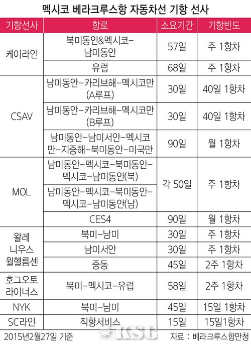 베라크루스항의 가파른 성장세에도 불구하고 출항 일정이 불분명한 것은 숙제로 남는다. 로로선 특성상 기아차 물량이 선박 가득 채우지 못하면 정시성을 지킬 수 없기 때문이다.