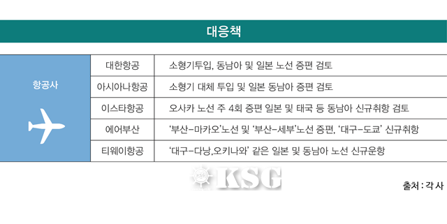 대구공항의 경우는 조금 더 구체적인 피해 상황이 나왔다. 지난해에는 1분기동안 중국-한국부정기노선이 34편이나 있었지만 올해는 하나도 없다는 것이 그것. 만약 보복조치가 지속적으로 이어진다면 실적을 내기에는 어려워 보일 것으로 전망된다. 이에 대구시도 피해를 최소화하기 위해 발벗고 나섰고 공항공사 대구지사와, 대구관광협회 등 유관기관들이 협력해서 적극적인 마케팅을 펼치기로 했다. 이들은 지난달 13일 활성화를 위한 업무협약을 체결하고 일본, 동남아등 국제선 운항확대를 위해 합동마케팅과 제휴를 하기로 했으며 남흥섭 공항공사 대구지사장은 특별히 다음달 2일에 취항하는 베트남 노선이나 일본, 동남아등의 외국인 관광객을 끌어 들일 수 있도록 관광상품개발을 하고 대구공항과 지역경제 활성화에 보탬이 되겠다고 덧붙였다.