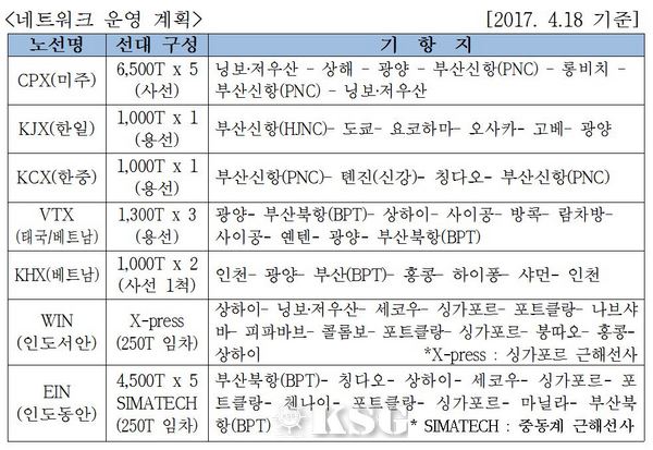 SM 상선은 지난달 베트남‧태국 노선인 VTX와 KHX를 시작으로, 3월20일 인도서안 서비스(WIN), 지난 15일에는 한중노선인 KCX를 정식 출범했다. 20일에는 CPX노선 첫 취항에 이어, 북항의 부산항터미널(BPT)에서도 인도동안 서비스(EIN)가 시작된다. 한일항로인 KJX 노선은 오는 25일에 부산항에서 첫 취항에 나선다.