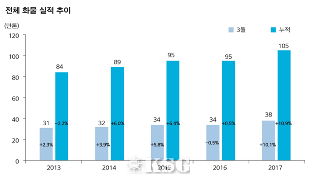 ▲연도별 월별(3월) 항공 화물 실적 추이 (자료 : 국토교통부)