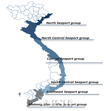 베트남의 항만은 ▲북부지역 항만(꽝닌성~난빈성) ▲중북부지역 항만(탄화성~하띤성) ▲중부지역 항만(꽝빈성~꽝응아이성) ▲남중부지역 항만(빈딘성~빈투언성) ▲남동부지역 항만 ▲메콩강 삼각주지역 항만으로 분류된다.