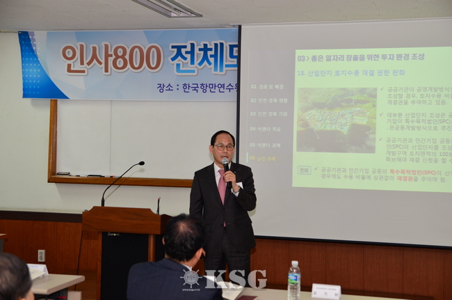 ‘인천항을 사랑하는 800모임’(인사800)은 27일 인천항만연수원 3층에서 전체모임 및 세미나를 가졌다. 이날 세미나에서 인천상공회의소 김기완 상근부회장은 인천시가 우선 실천해야 할 과제로 ‘인천항 신항 항만배후부지 조기 조성 및 국비 형평 지원’을 꼽았다.