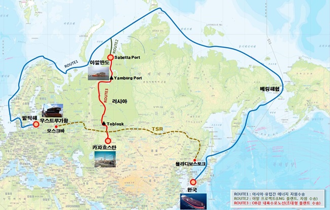 2년 뒤에는 첫 상업운항에 나선 CJ대한통운이 자사 중량물운반선을 투입, UAE(무사파항)-러시아(카메니항·야말반도) 노선에서 해상 하역설비를 운송했다. 지난해 7월15일에는 SLK국보가 북극항로-러시아 내륙수로를 연계한 새로운 수송로를 활용했다. 팬오션도 같은 해 자사 중량운반선을 이용, 야말프로젝트 LNG 플랜트 설비운송에 나선 바 있다.
