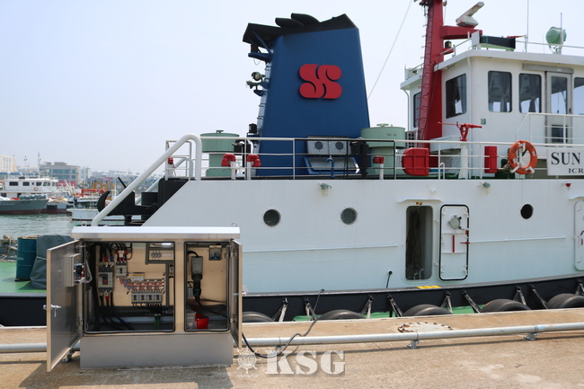 | ▲ 인천항 역무선부두에 설치된 AMP. 26기의 AMP가 예인선과 관공선에 전기를 공급하고 있다. |