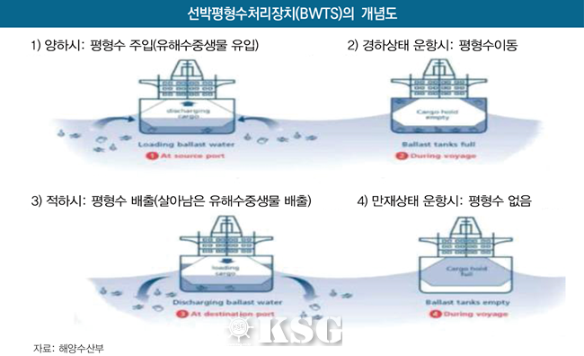 국제해사기구(IMO)는 지난 2004년 국제해역을 항행하는 상선 전체에 대한 선박평형수 처리장치 설치를 의무화하는 내용의 ‘선박평형수 관리협약’을 채택했다. 선박은 화물의 적재상태에 따라 균형을 바로잡기 위해 평형수 탱크에 바닷물을 주입해야 한다. 화물의 무게가 왼쪽에 집중되면 오른쪽에 평형수를 넣어 중심을 잡는 방식이다.