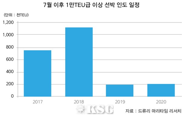 이미 2020년 말까지 수주잔량이 300만TEU에 육박하고 있고 최근 전 세계 선복량이 2천만TEU를 넘어선 점에 미뤄 볼 때 선복량은 꾸준히 늘어날 것으로 전망된다. 새로운 선박의 대부분은 2019년 이전에 인도될 계획으로 40% 가량이 1만8000TEU급 선박이다. 2만TEU급 선박이 더 많이 인도되면 선사들은 선박 인도 후 항로 배선과 이미 진행하고 있는 항로별 캐스케이딩에도 어려움을 가중시킬 것으로 보인다.