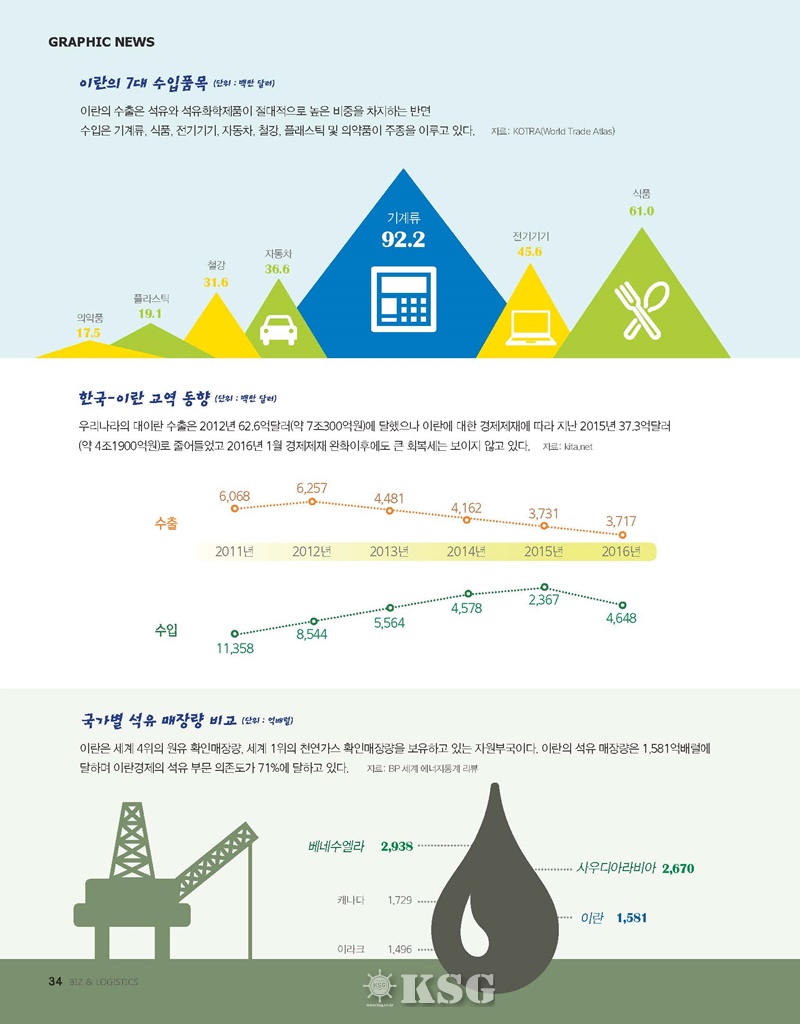 우리나라의 대이란 수출은 2012년 62.6억달러(약 7조300억원)에 달했으나 이란에 대한 경제제재에 따라 지난 2015년 37.3억달러(약 4조1900억원)로 줄어들었고 2016년 1월 경제제재 완화이후에도 큰 회복세는 보이지 않고 있다.