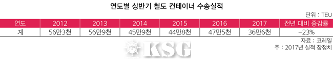 상반기 철도 ‘컨’ 수송량 전년比 23%↓