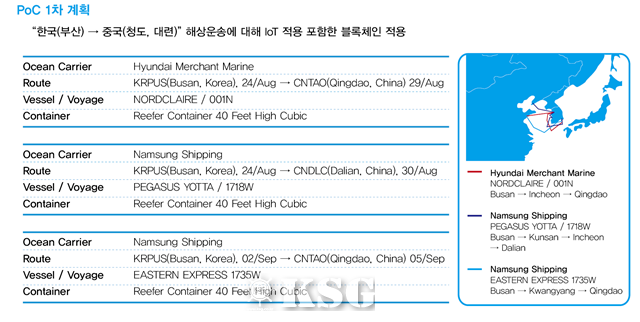1차 PoC는 부산항에서 중국 청도, 대련항으로 향하는 현대상선과 남성해운의 수출 물량을 대상으로 블록체인 기술을 적용했다. 2차 PoC는 금융과 보험업무를 포함해 태국 베트남 인도 두바이 유럽으로 확대할 예정이다. 2차 PoC 대상 범위는 ▲해운선사 ▲공공기관(세관, 항만청 등) ▲물류실행사(터미널운영사 등) ▲송화주 ▲수화주 ▲매입은행 ▲보험회사 ▲발행은행으로 확대된다.