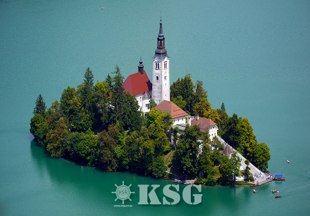 블레이드 호수에서 블레이드 섬까지 플레트나 배로 15분 정도 소요된다. 블레드 호수 중간에 떠 있는 블레드 섬은 아주 작은 섬이지만 섬 안에 성모 마리아 승천 성당이 세워져 있다. 원래 슬라브인들이 지바 여신을 모시던 신전이 있던 곳인데, 8세기에 그리스도교를 위한 성당으로 탈바꿈되었다. 바로크 양식으로 지어진 성당의 내부에는 ‘행복의 종’이 있다. 사랑하는 남편을 잃은 한 여인이 남편을 기리기 위해 이 성당에 종을 달기를 원했지만, 이루어지지 못했다. 그 이야기를 들은 로마 교황청이 그녀를 위해 종을 기증하면서 그녀의 소원이 이뤄졌다. 그녀가 남편을 기리는 마음처럼 이 종을 치면 사랑의 행운이 온다고 해서 인기가 높아졌다. 그 이유 때문인지 이 성당에서 결혼식을 한 커플들은 종을 치면서 행운을 빈다고 한다. 그리고 이 성당은 슬로베니아인들이 결혼식 장소로 손꼽는 인기 있는 장소이다.