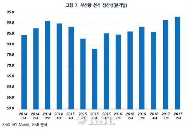 한편 KMI는 컨테이너 선박의 초대형화가 급속히 진행되고 있어 선석생산성이 향상되지 않으면 선박의 대기·체선 현상은 더욱 심화될 것으로 전망했다. 이를 해결하기 위해 정부가 항만 경쟁력을 강화하고, 글로벌 선사의 부산항 기항 선호도를 높이기 위해 선석생산성을 향상시키는 등의 정책을 수립해야 한다고 제안했다.