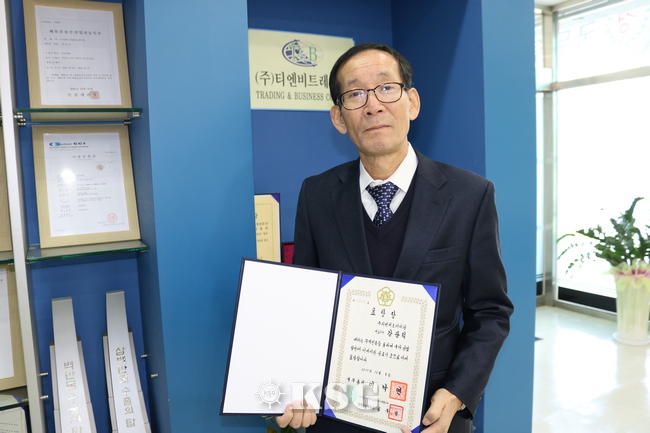 | ▲강광덕 대표이사가 제54회 무역의 날 행사에서 정부포상과 수출의 탑을 수상했다. |