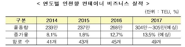 이번 성과는 지난해 인천신항 개장 등 항만 인프라 확충, 한중 FTA 체결에 따른 교역량 증가, IPA의 화물유치 마케팅 등의 결과로, 2005년 100만TEU, 2013년 200만TEU 달성에 이어 4년 만에 새로 쓴 기록이다. 300만TEU는 일렬로 연결하면 서울과 부산을 24번 왕복할 수 있는 규모다.