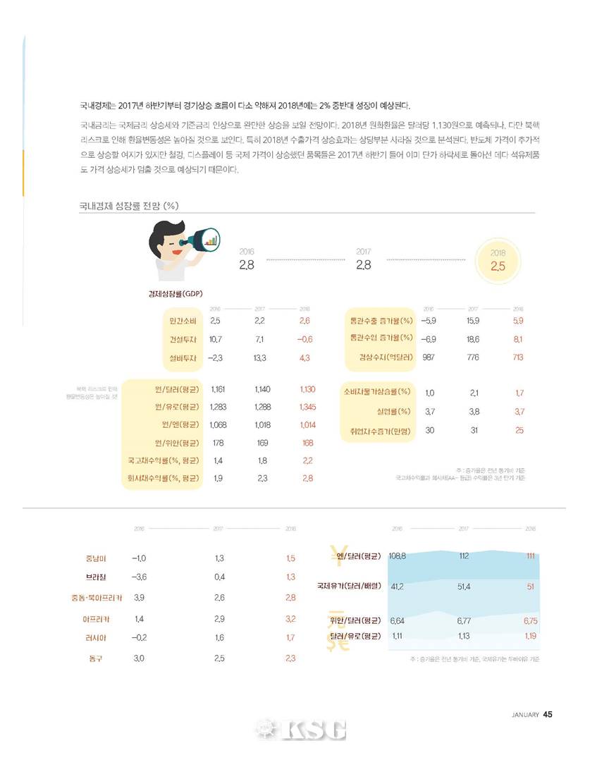 국내경제는 2017년 하반기부터 경기상승 흐름이 다소 약해져 2018년에는 2% 중반대 성장이 예상된다.