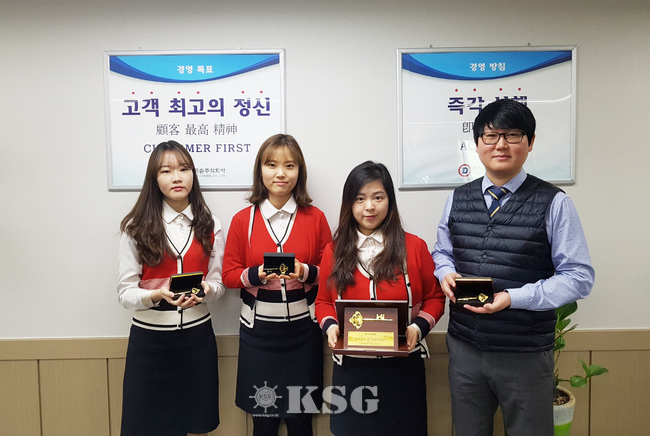 지난 1월16일 대한항공 부산화물지점으로부터 ‘2017년도 우수 협력기업’으로 선정돼 공로패를 수상했다. 저희는 물류에 대한 모든 서비스를 제공하고 있다. 특히 해운항공물류분야에 매우 특화된 영업망을 바탕으로 매년 꾸준한 성장세를 보이는 기업으로 부상하고 있다.