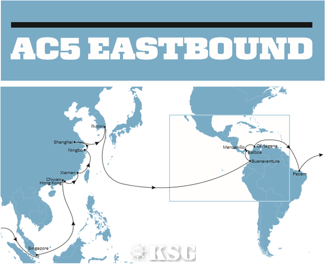 또한 이 해운사는 칠레 안토파가스타·앙가모스·이키케·샌안토니오·발파라이소 등을 아우르는 직항 서비스를 제공할 예정이다. 발파라이소·카야오발 부산·요코하마·상하이행 수송 시간을 약 1주일 절감시킬 수 있을 것으로 기대된다. 'AC5'의 구체적인 선대 투입 계획은 3월 중에 발표될 것으로 보인다.