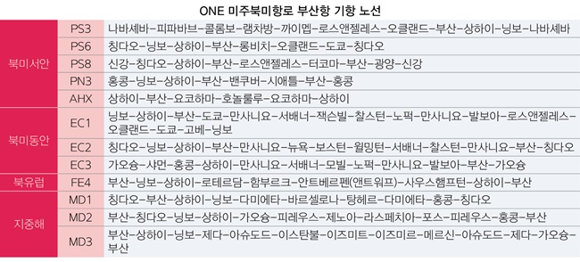 일본 3대 해운사가 뭉친 오션네트워크익스프레스(ONE)가 미주·유럽항로에서 부산항에 총 12회 취항한다.