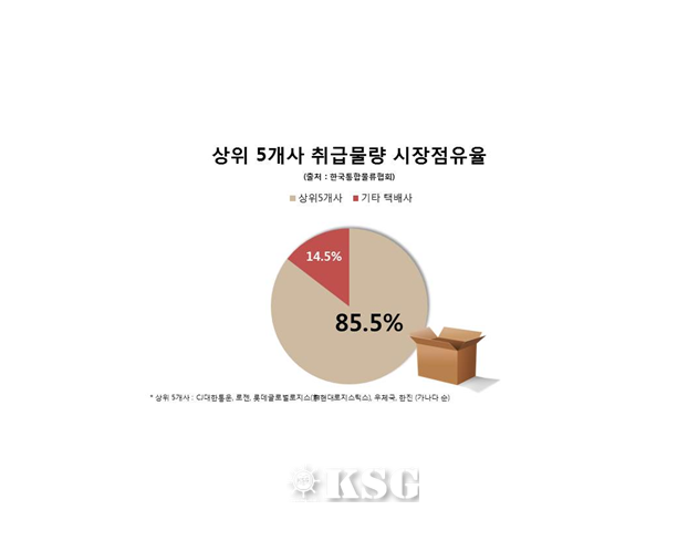 상위 5개사의 취급물량은 전체 택배시장의 85.5%로 나타났다. 이는 전년 대비 2.2% 증가한 수치다.