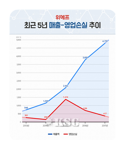 위메프는 감사보고서 공시를 통해 2017년 연간 매출 4731억원, 영업손실 417억원, 당기순손실 476억원을 기록했다고 3일 밝혔다.
