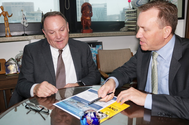| ▲켄 오할렌 국장과 더글러스 스미스 부장이 터미널6의 장점을 설명하고 있다. |