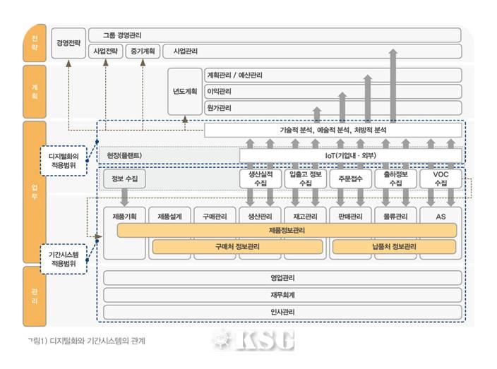 우리는 이미 이런 경험을 20여년 전부터 최근까지도 기업의 기간시스템인 ERP나 SCM을 통해서 겪어오고 있다. 기업의 기간시스템이란 목표치로써 재무예산에 대해 재무실적을 쌓고 예산실적관리를 하기 위한 수단이다. 즉 재무 데이터를 중심으로 기업의 모든 경영활동을 하나로 통합한 것이라고 할 수 있다.