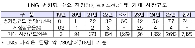 LNG 수요를 고려한 항만 내 LNG벙커링 인프라 구축도 이뤄진다. 정부는 올해 8월까지 ‘LNG벙커링 기반 구축’과 관련한 중장기 로드맵을 올해 9월까지 수립하고, 2025년까지 부산·울산·광양·인천·평택항 등에 벙커링 터미널을 단계적으로 구축할 계획이다.