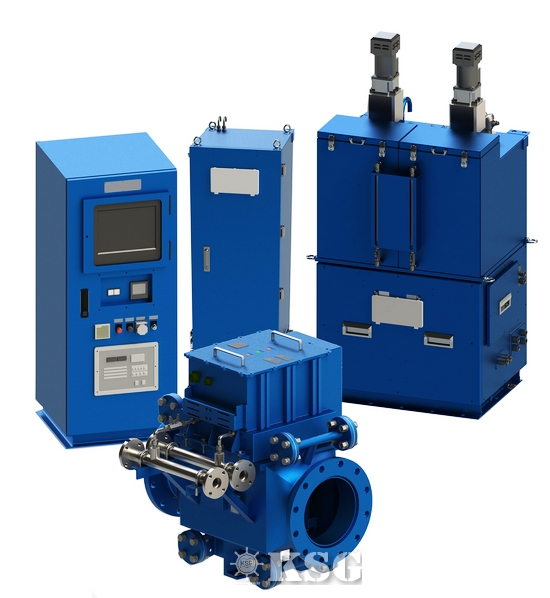 | ▲테크로스가 개발한 선박평형수처리설비. 핵심인 평형수처리장치(ECU, 사진 아래)와 전원공급장치, 중화장치, 잔류산화물 측정장치 등으로 구성된다. |