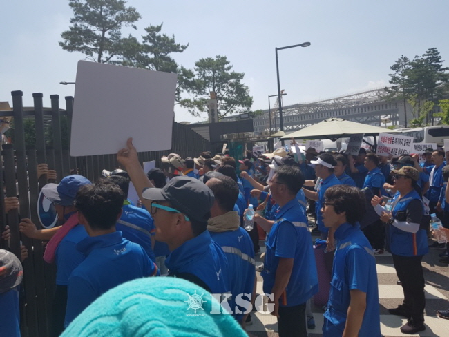 <택배노조가 CJ대한통운 본사 앞에서 집회를 하는 모습>