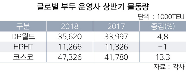 아랍에미리트 두바이에 본사를 둔 DP월드는 상반기에 약 3562만TEU를 처리하며 지난해보다 4.8% 증가한 성적을 거뒀다. 실적 증가의 배경으로 호주와 유럽 등지의 물동량 증가가 꼽혔다.