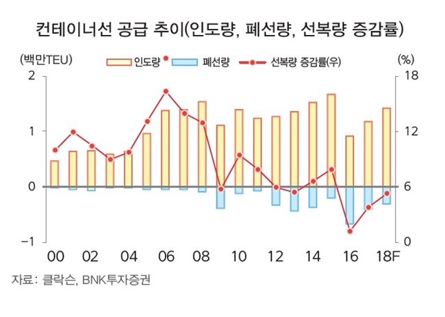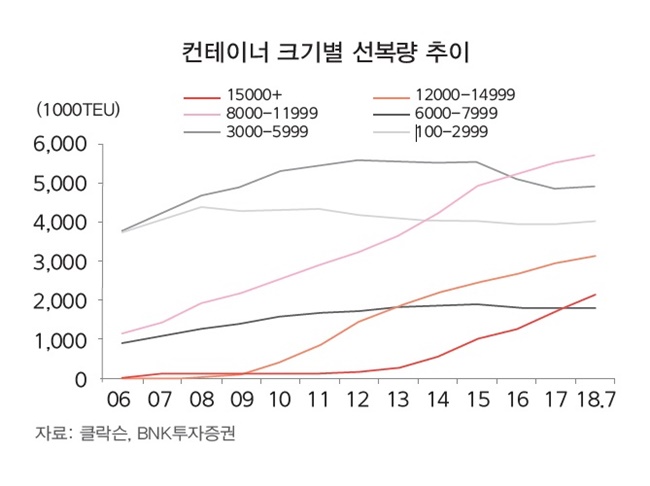BNK투자증권 이선일 연구원은 “중소형선박을 대형선이 대체하면서 선복량이 빠르게 증가하고 폐선량은 크게 줄어 상당 기간 공급과잉에 빠질 수 있다”고 경고했다.