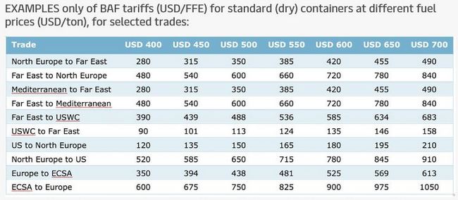 머스크라인은 “유가가 변경되더라도 2가지 요소를 반영하면 화주들에게 (비용 인상·인하에 대한) 완전한 예측가능성(predictability)을 제공할 수 있다”고 말했다. 이 선사는 유가가 t당 400달러일 경우 항로별로 극동아시아-북유럽·지중해 항로는 40피트 컨테이너(FEU)당 480달러, 극동아시아-북미서안 항로는 390달러를 부과하겠다고 밝혔다.
