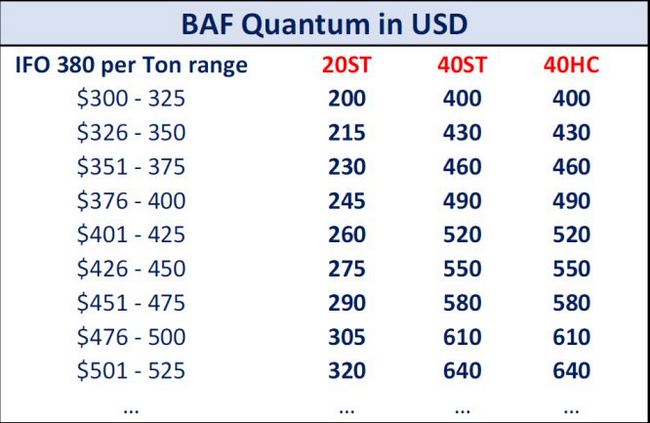 | ▲머스크라인 유류할증료(BAF) 개정안 / 자료: 머스크라인 |