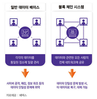 공공 거래 장부라고도 부르는 블록체인은 중앙 집중형 서버에 거래 기록을 보관하지 않고 거래에 참여하는 모든 사용자에게 거래 내역을 보내 주며, 거래 시 모든 거래 참여자들이 정보를 공유하고 이를 대조해 데이터 위조나 변조를 할 수 없도록 돼 있다. 다시말해 이 기술을 통해 보다 공정하고 투명하게 정보를 관리할 수 있는 것이다.
