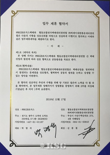 KGB택배 박병성 대표는 “양사간 업무교류를 통해 발전의 좋은 기회가 될 것이라 생각한다”며 “더 좋은 결과가 있기를 바란다”고 말했다.