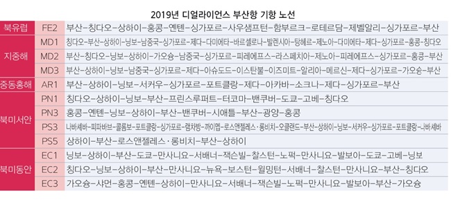 디얼라이언스는 아시아-북유럽 노선에서 총 5개의 서비스를 제공할 계획이다. 부산 취항 노선은 1개(FE2)다. 부산을 출발해 중국 칭다오와 상하이, 싱가포르를 거쳐 사우샘프턴, 함부르크, 로테르담 등을 연결하는 서비스다.