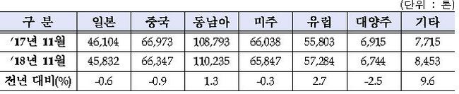 1~11월 누적 물동량은 지난해 동기 대비 3.2% 증가한 407만t을 기록했다.