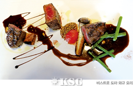 필자의 매장인 ‘비스트로 도마’에서는 오픈부터 현재까지 와규의 특수부위인 럼프캡(rump cap)을 사용한다. 럼프캡은 채끝등심에서 엉덩이 안으로 넘어가는 특수부위로 특징은 등심과 안심의 중간정도 질감에 마블링이 우수해 스테이크용으로 제격이다. 와규는 원래 일본산 흑우로 일본산와규는 아직 한국에는 수입되고 있지 않지만 일본산 와규와 미국산 블랙앵거스를 교배해 호주와 뉴질랜드, 미국산 와규가 국내에서 판매되고 있으며, 비교적 가성비 좋게 생산된다. 일본 와규는 세계에서 가장 비싼 소고기로 필자가 작년에 일본 오사카여행을 갔을 때 와규 전문 레스토랑에서 샤또브리앙(안심부위)300g이 무려 60만원이 넘었다. (물론 비싸서 못 먹고 다른 부위를 먹었지만)