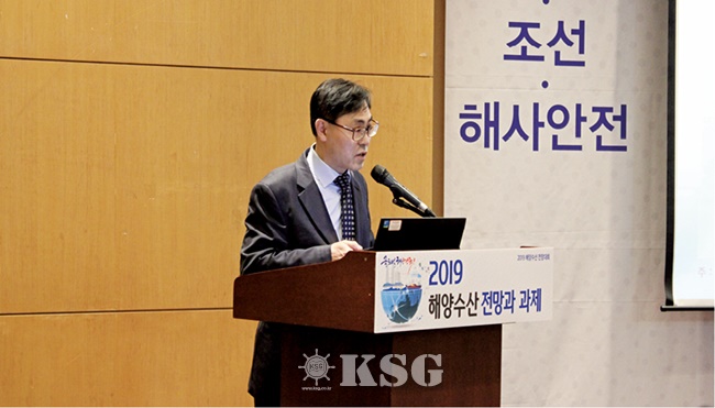 지난 10일 서울 코엑스에서 열린 ‘2019 해양수산 전망대회’에서 한국해양수산개발원(KMI) 전형진 실장은 ‘컨테이너 해운시장 경쟁 구도 변화와 대응 방향’이라는 주제발표를 진행했다.
