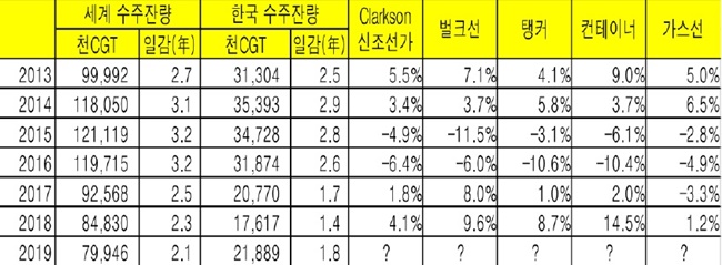 신조선가 변동은 조선사들의 수주잔량 확보에 따라 이뤄지기 마련이다. 2년치 이상의 일감을 확보한 국내 조선사들은 건조단가를 올리는 게 수월해진다. 지난해 1761만7000CGT(수정환산톤수)의 수주잔량을 확보한 조선사들은 올해 2000만CGT 이상의 일감을 확보할 것으로 전망된다.