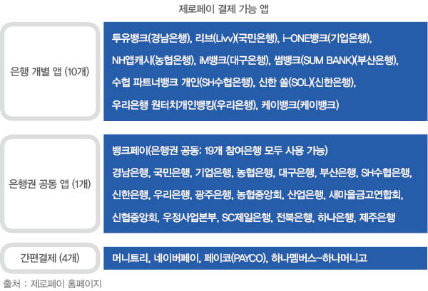 제로페이는 최저임금에 대한 후속책으로 정부와 지자체, 은행과 민간 간편 결제 사업자가 내놓은 결제서비스이다. 소기업 중 상시근로자가 5인 미만(광업, 제조업, 건설업, 운수업은 10인 미만)인 소상공인 가맹점 중 매출액 8억원 이하는 수수료 0%를 적용받는다. 소비자에게도 40%의 소득공제 혜택이 돌아간다. 현재 20개의 은행(개별 앱 사용 10개 은행, 은행 공동사용 앱 뱅크페이)과 4개의 핀테크 업체(개별 앱 사용)가 함께 QR코드 간편 결제 시스템을 도입했다. 그러나 제로페이로 구매하려면 별도의 은행 앱을 이용해야하기 때문에 불편함이 따른다. 기존 은행 앱과는 다른 별도의 결제 앱을 요구하기도 하며 주요 은행 자체 앱의 일부로 제로페이 기능을 탑재하다보니 메뉴를 찾는 것부터가 쉽지 않은 실정이다.