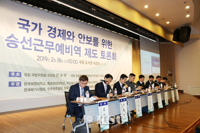 18일 국회에서 열린 ‘승선근무예비역제도 토론회’에서 한국전략문제연구소 김기호 박사는 “승선근무예비역 제도를 통해 배출된 해기인력들이 국가 비상시에 육·해·공군과 함께 국가안보에 큰 역할을 하고 있음에도 ‘예비역’이란 명칭이 오해를 불러일으키고 있다”며 이 같이 말했다.