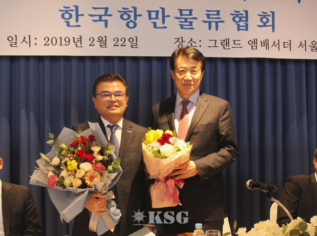 | ▲ (왼쪽부터) 항만물류협회 김종성 신임회장(동부익스프레스 대표), 손관수 CJ대한통운 대표 |