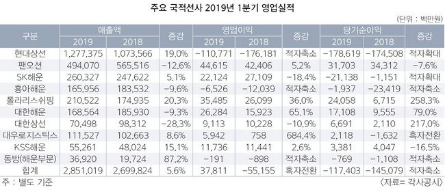 팬오션과 KSS해운의 경우 영업이익 개선과 달리 순이익은 감소세를 띠었다. 현대상선도 순손실 폭이 확대됐다.