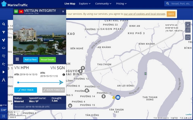 | ▲<베트선인테그리티>호가 침몰한 사고지점. / 자료: 머린트래픽 캡처화면 |